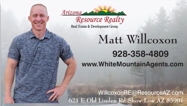 My name is Matt Willcoxon. I am a US Air Force veteran, my trade was aircraft maintenance. I have worked on planes ranging from the C-130 to the Predator and Grey Eagle drones. After the military, I was a government contractor for 12 years, deploying and working directly with our military down range! My Real Estate journey started 8 years ago in Tennessee, and followed me here to Arizona when we moved here 4 years ago. After spending our first few years down in the Valley, we came up and fell in love with the White Mountains, so we now call it home! I look forward to helping you find the new place you call home here in the White Mountains!